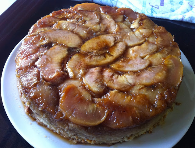 It's a shame that this Baking with Julia recipe for what should've been a Nectarine Upside-Down Chiffon Cake was chosen for this month's TWD bake rather than last August's as it was around that time that our supermarkets had an abundance of all kinds of stone fruits-- apricots, peaches, nectarines, plums, pluots, cherries--you name it, we had it! The nectarines in particular were really gorgeous; they were large, unbruised, and perfectly ripe which I'm certain would've been amazing on this cake but alas, stone fruit season is no more here in our neck of the woods. All that remained in the shelves for me to use were four pathetic-looking white peaches that thankfully were somewhat sweet and had their flesh intact but their paleness lent a rather dull, less-appealing color to the caramelized topping of this upside-down cake. Using nectarines or even yellow peaches would've definitely contributed a much more vibrant and appetizing color.